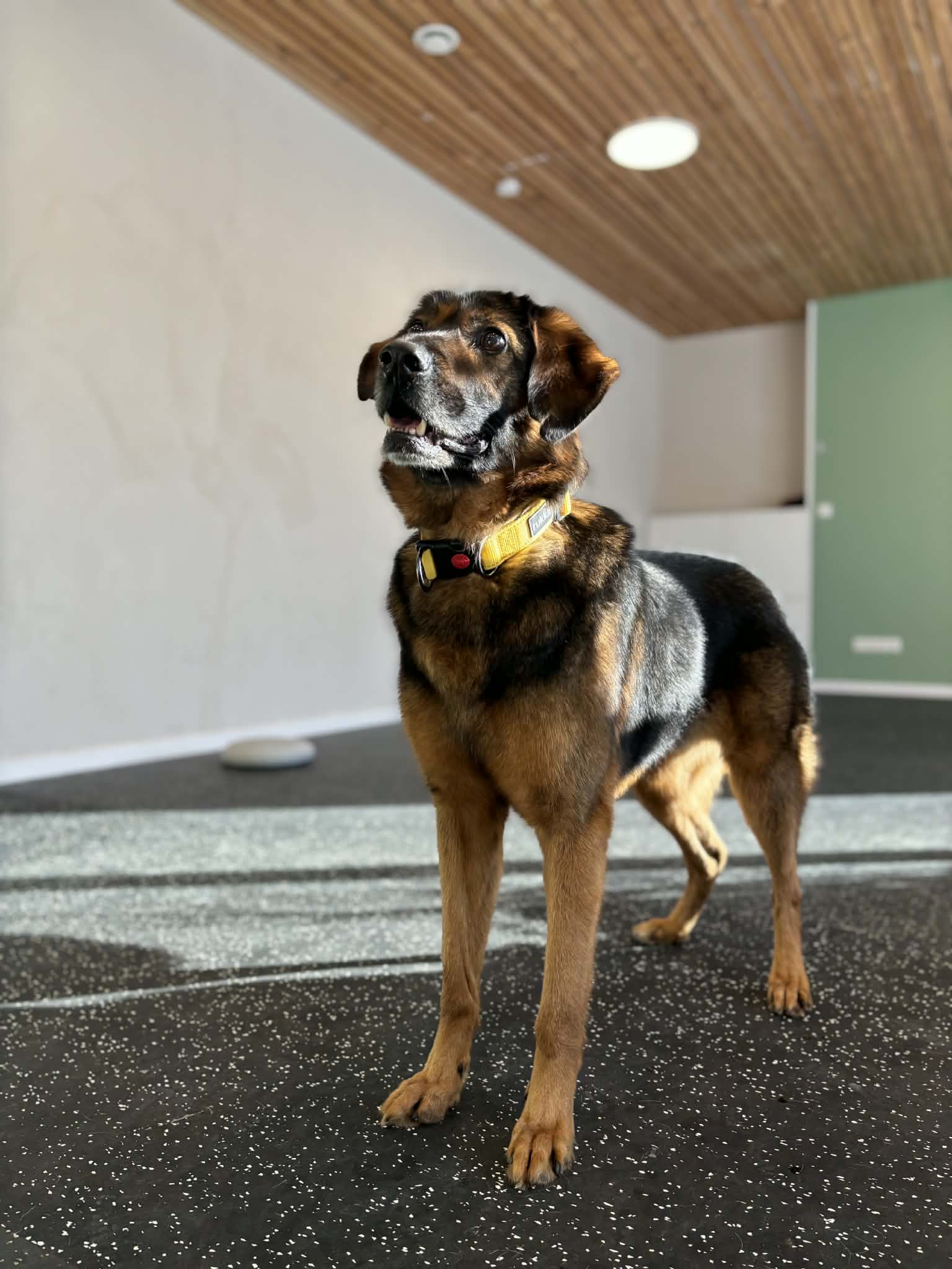 Į viešbutį atvyko bailokas ir nedrąsus, bet stebėtinai greitai pradėjo pasitikėti. Per kelias dienas apsiprato savo kambaryje, dabar jau drąsiau tyrinėja bendras patalpas ir vis dažniau pats ateina ieškoti žmogaus.