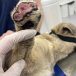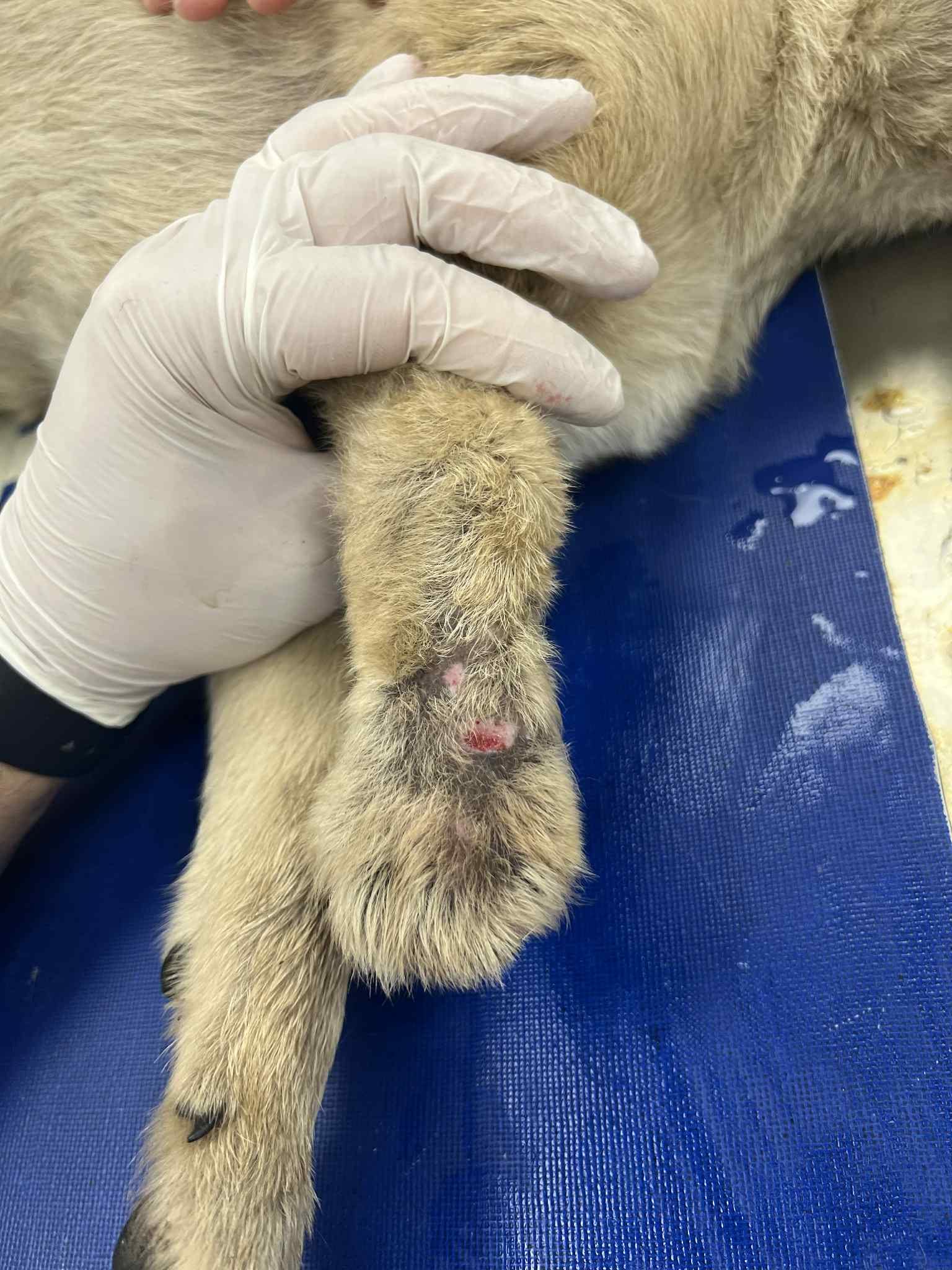 Atvyko su sužeista koja kaip ir keli kiti broliai sesės – deja nežinome nei kas nei kaip nuskriaudė mažylius.. Laukas beveik nevaikščiojo keturiomis, tad visai neliūdi – trimis kojomis ir prieš operaciją šuoliavo greičiau už kitus.